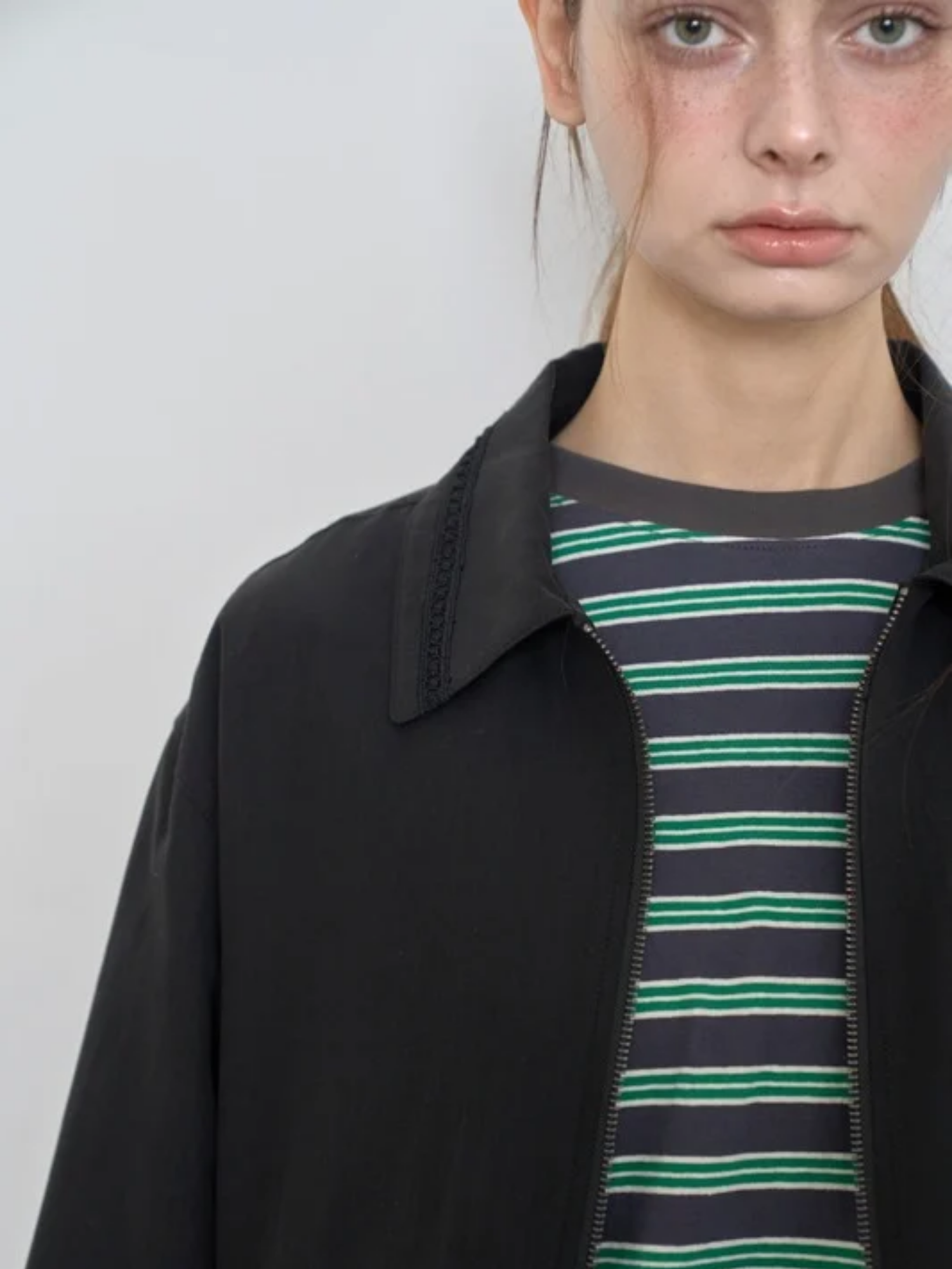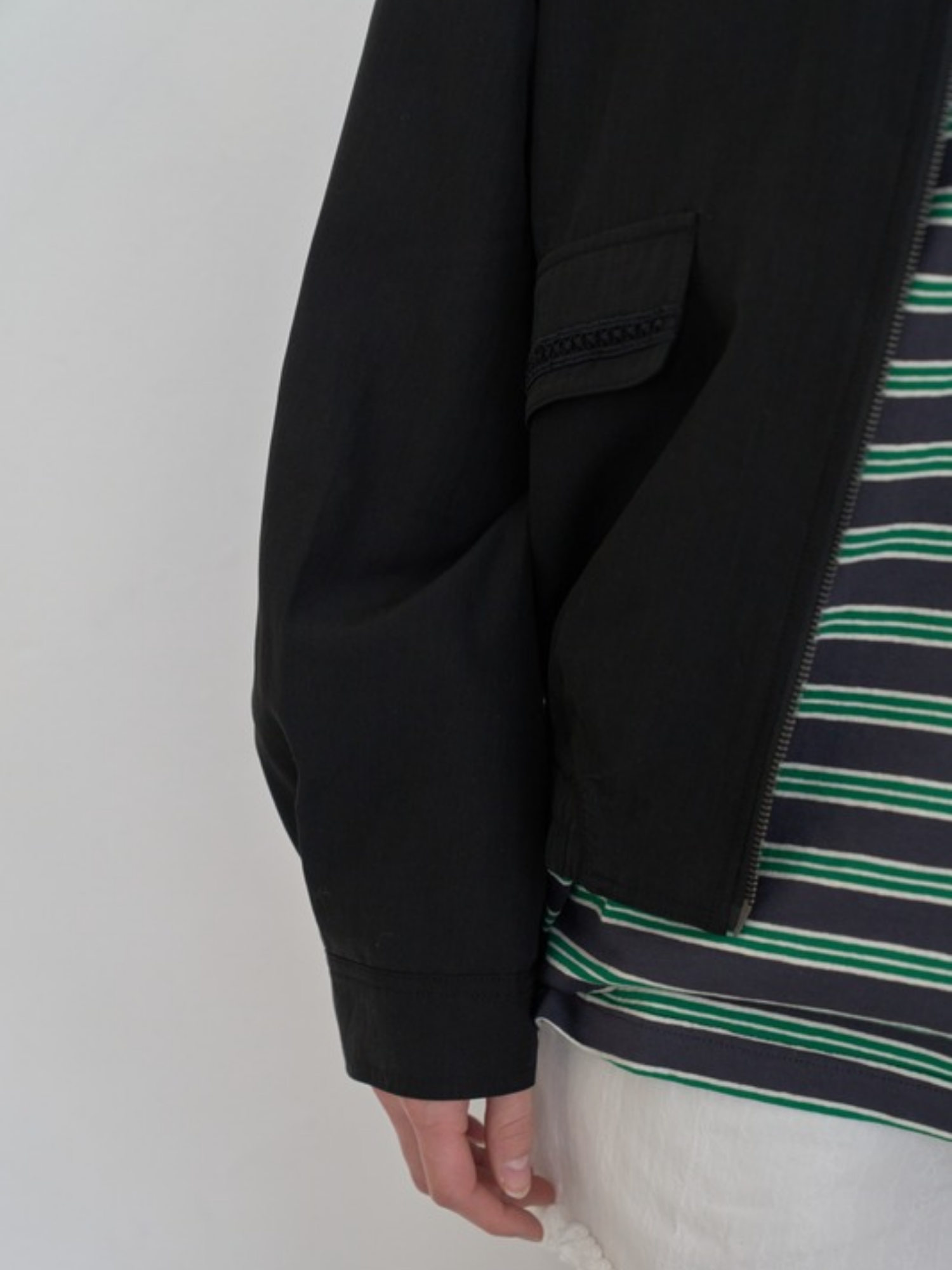 -네크와 주머니 레이스 테이프 디테일