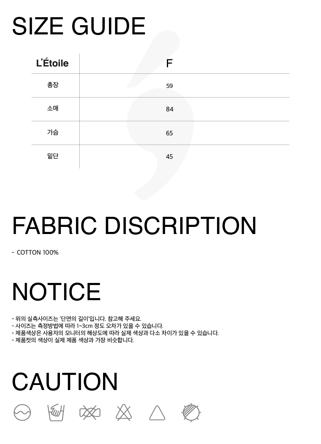 F 총장 59 어깨 75 가슴 65 소매 85 밑단 45