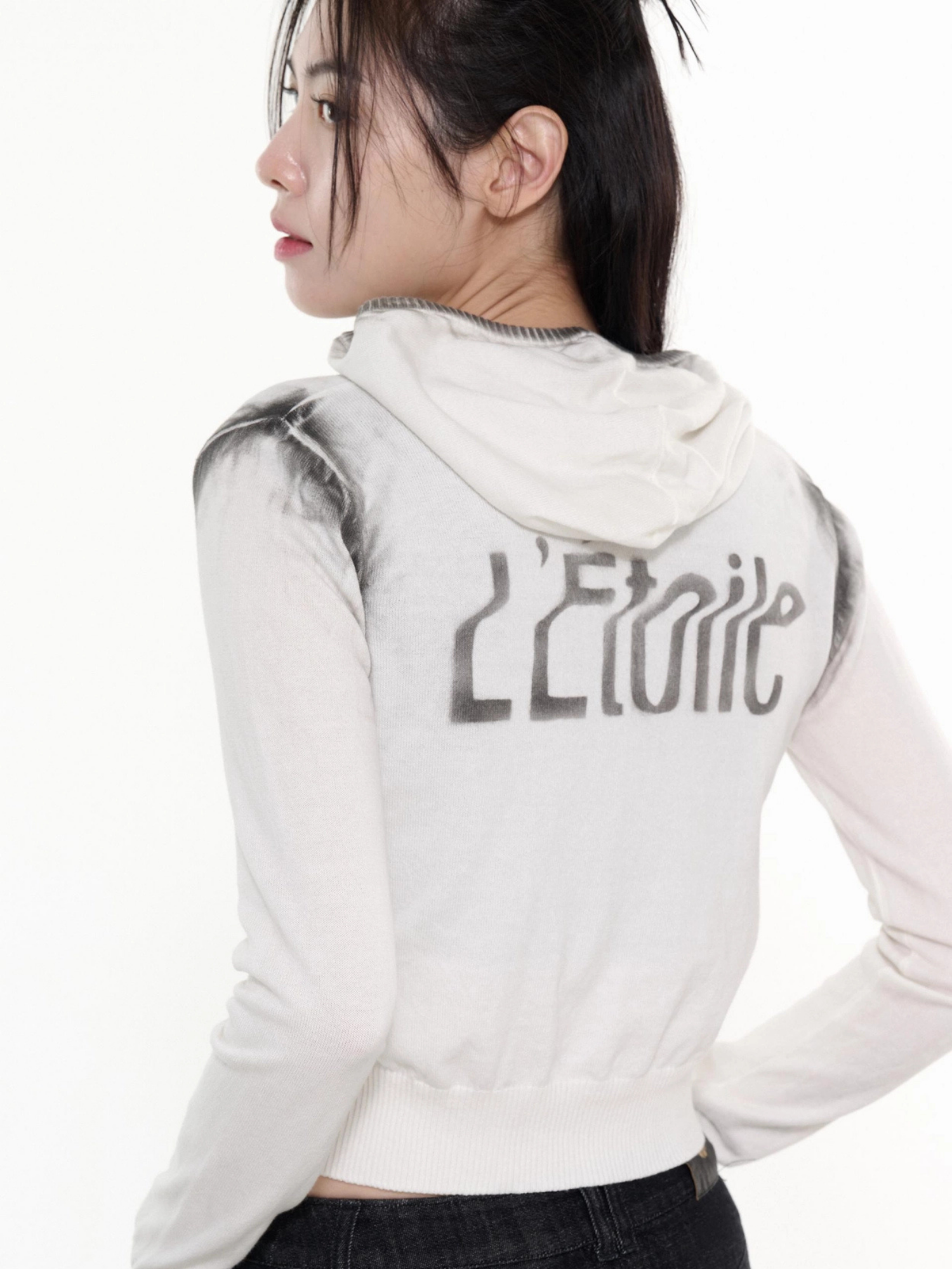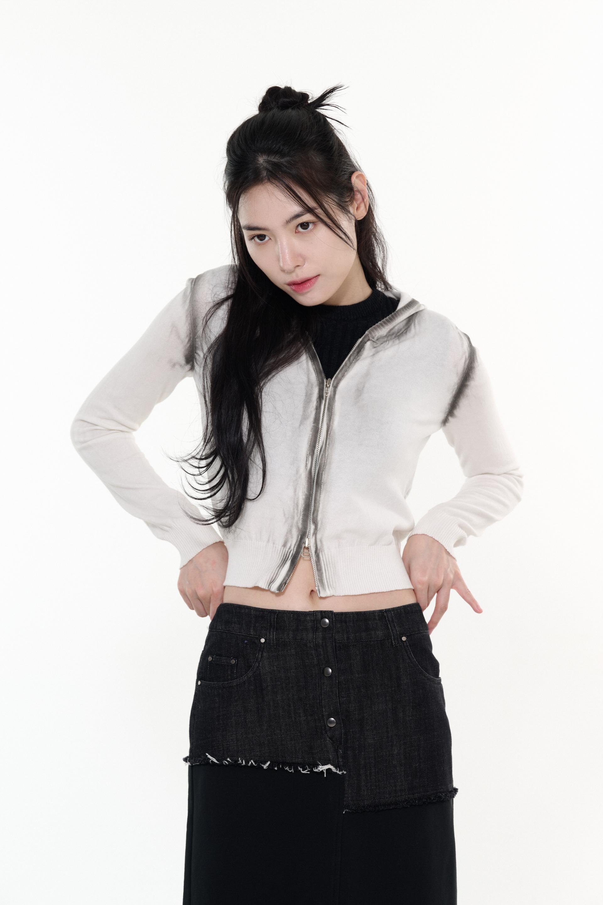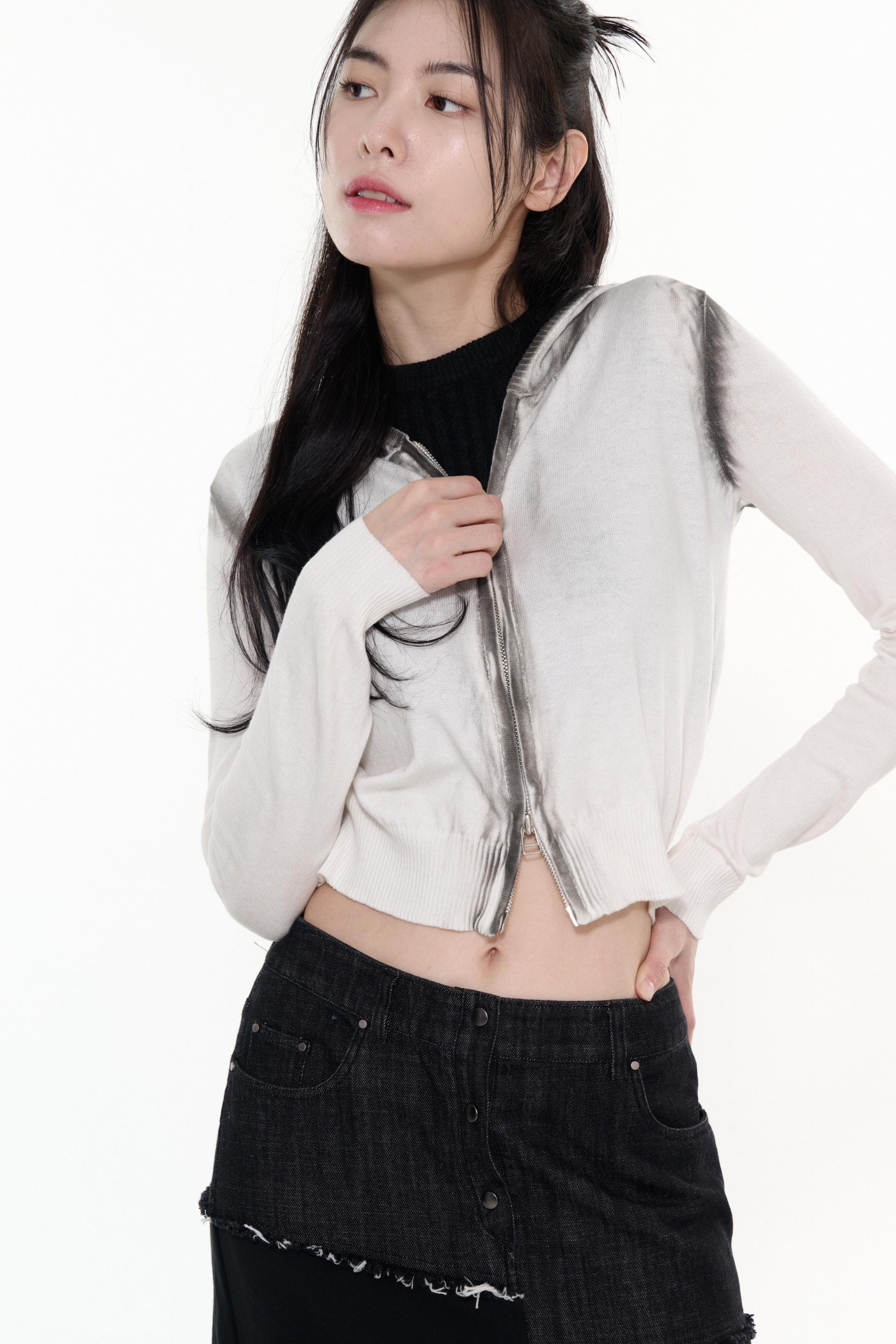 LEBSSNC1311 빈티지 스프레이 니트 후드 집업