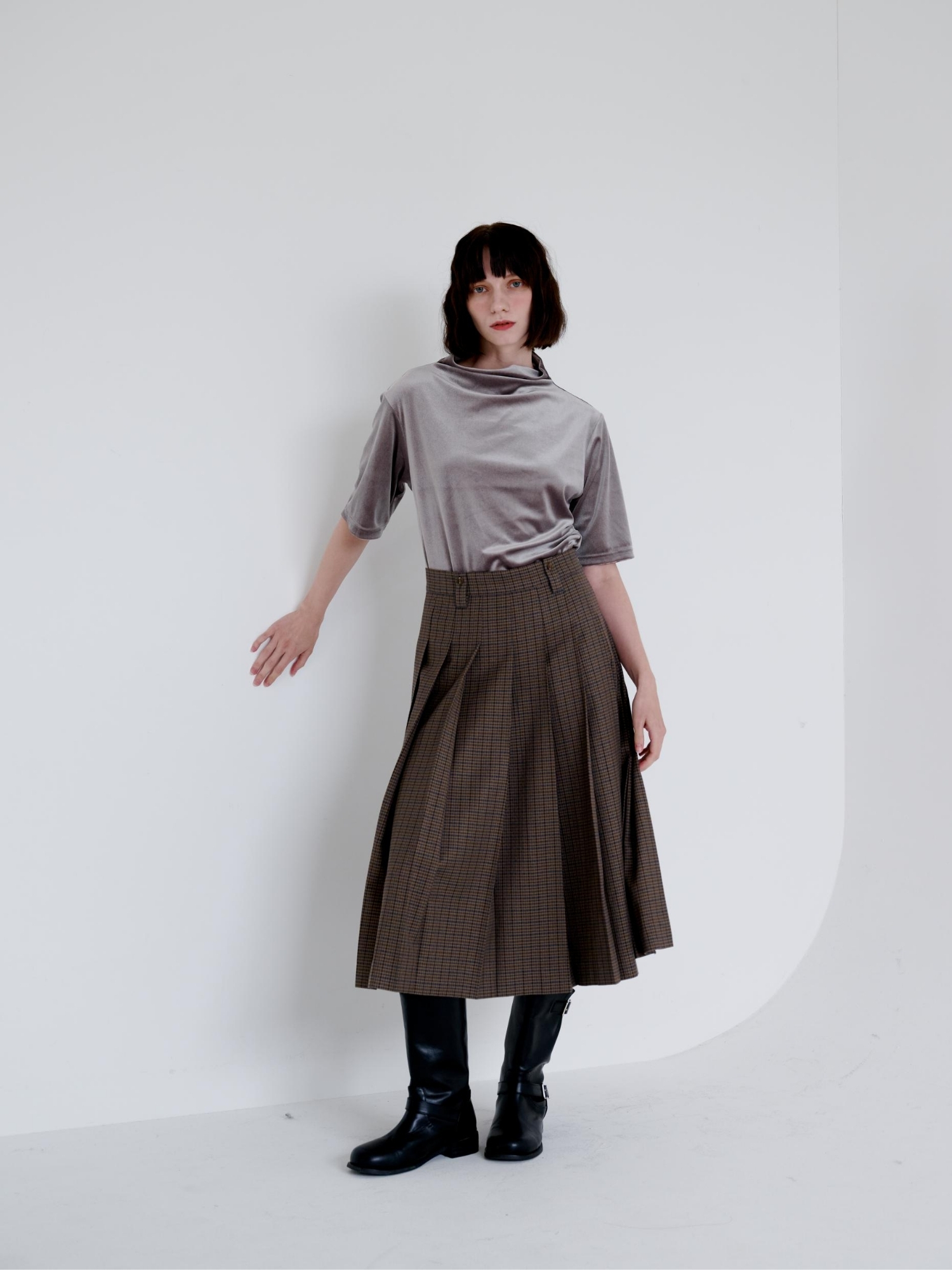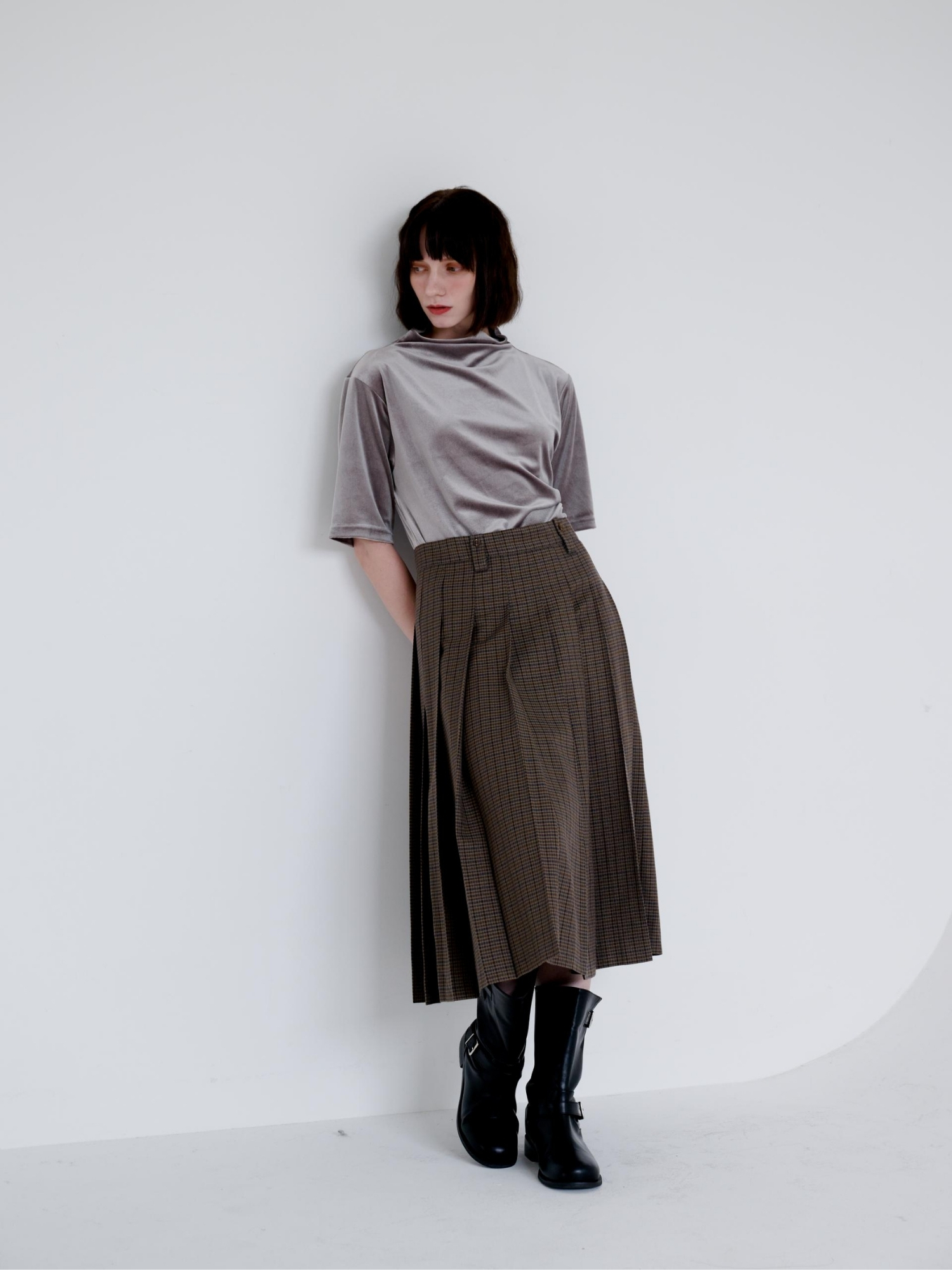 CHECK MIDI PLEAT SKIRT
